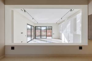 Menuiserie et Éclairage : Aluminium haute performance par Cami et système d'éclairage sur rails Simon Electric.