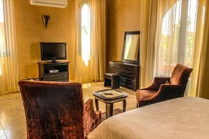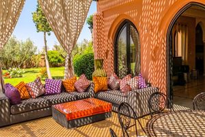 Deux villas, largement ouverte sur l'extérieur, ont été conçue comme un Riad avec une décoration soignée au cœur de la palmeraie de Marrakech sur la route de Fès. Proche des 3 meilleurs Golfs.